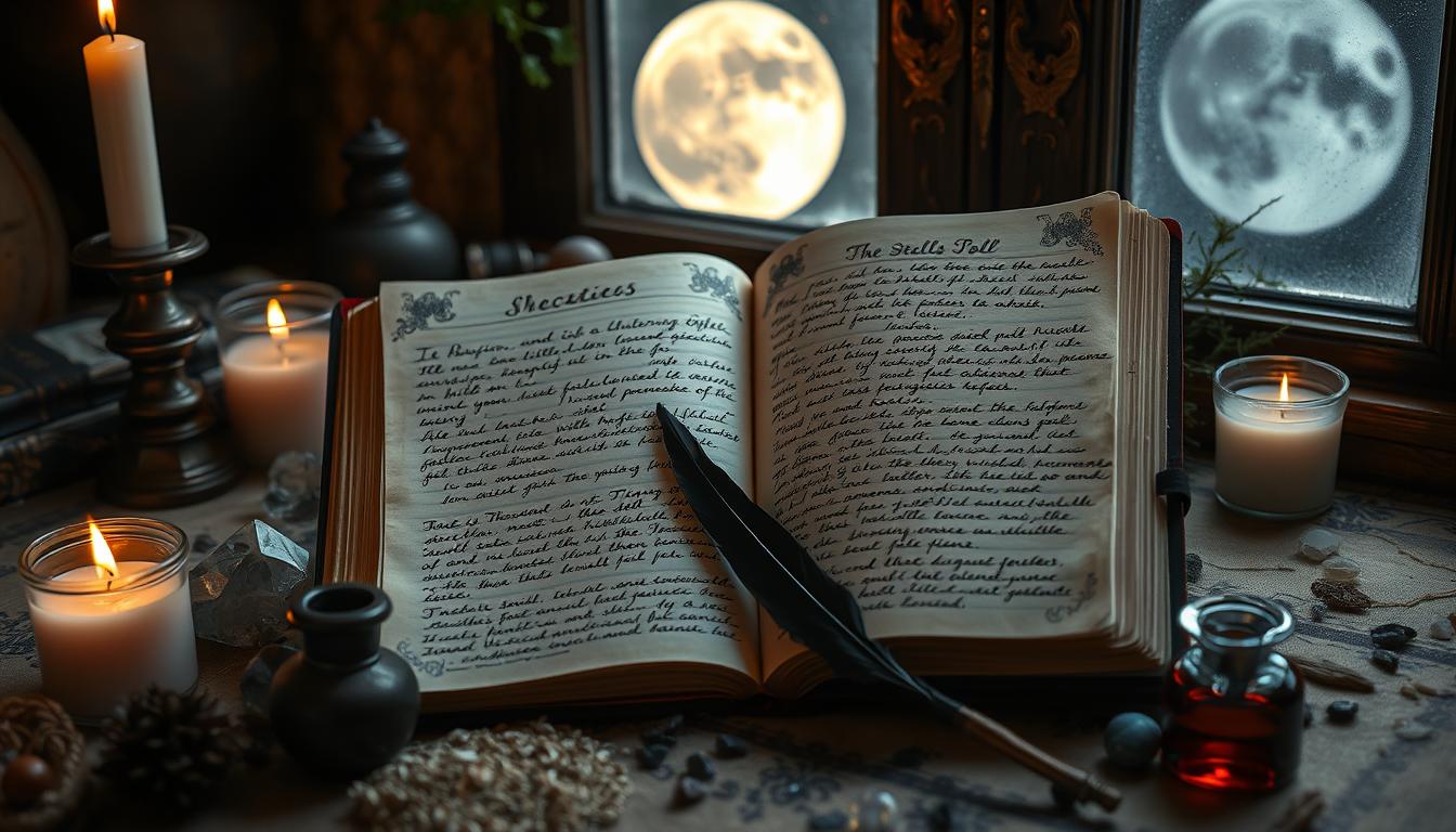 Explore writing prompts for witches and how lunar phases can guide your journaling. This guide covers many journaling techniques to improve your witchcraft. It also shows how dream journaling can boost your intuition and reveal your future.