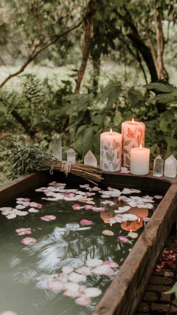 Draw a warm bath infused with herbs like lavender, rose petals, and calendula. Add a handful of sea salt for purification, and use this time to shed the old and embrace the new.