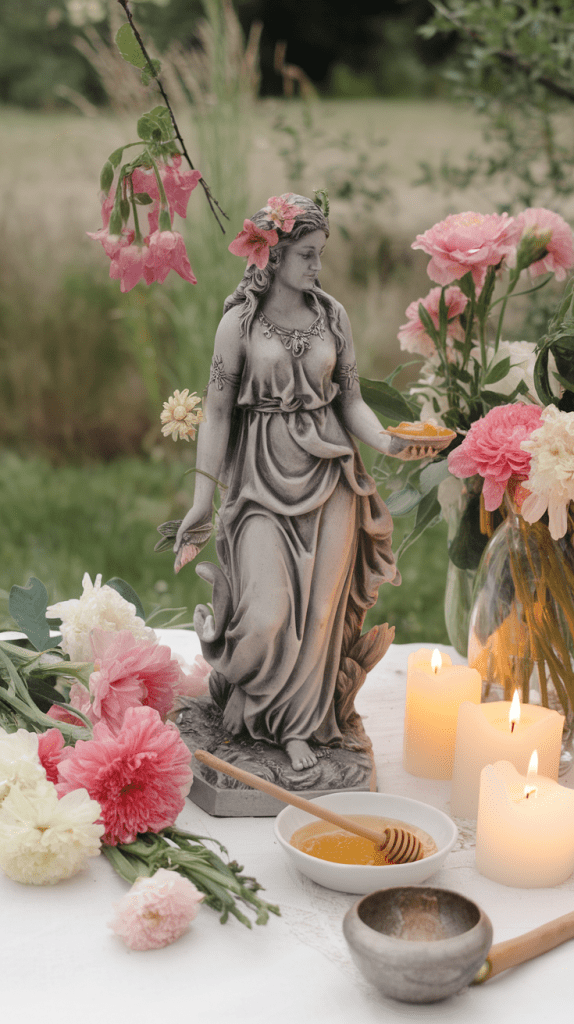Research and connect with spring deities such as Persephone, Brigid, Artemis, Mars or Eostre. Create offerings or rituals to honor them and invite their guidance into your life.