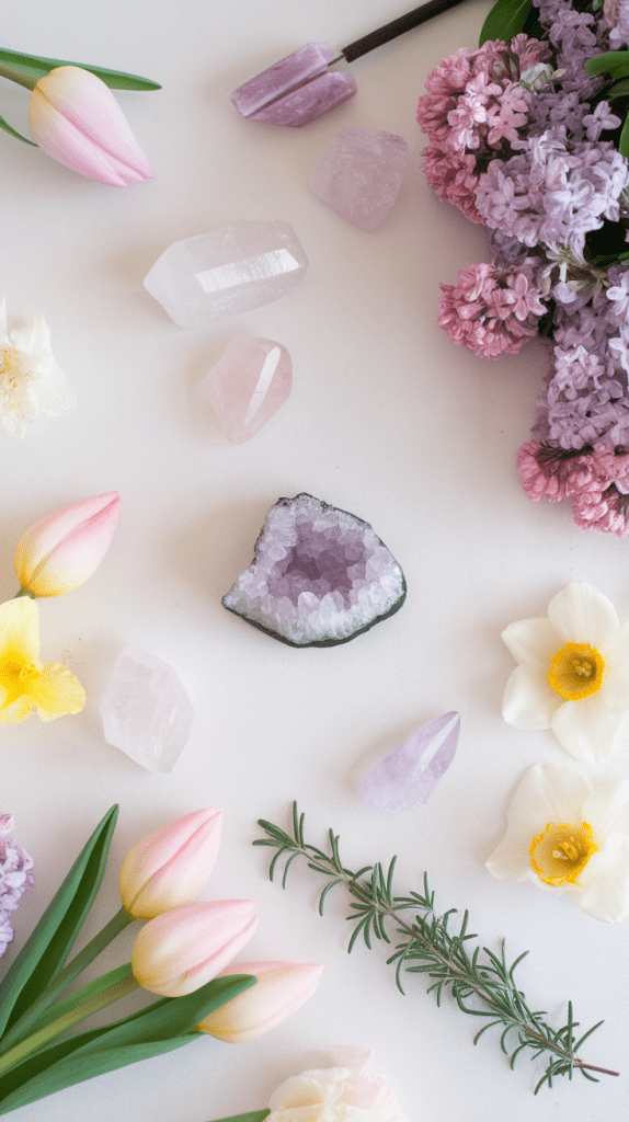 - Crystals: Rose quartz (love), aventurine (growth), citrine (abundance), amethyst (spiritual clarity).