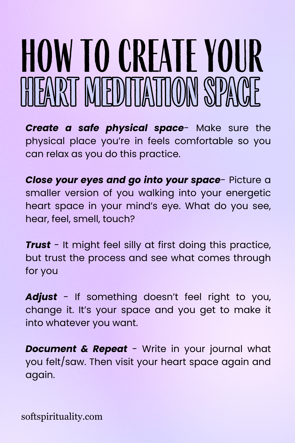 If you’ve never done a meditation that guides you through visiting your heart space, here are a few steps for how to create yours.