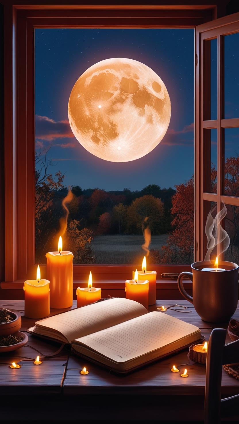 The Harvest Moon is the closest full moon to the autumn equinox, symbolizing abundance and preparation. Pisces or Aries energy emphasizes reflection and action.