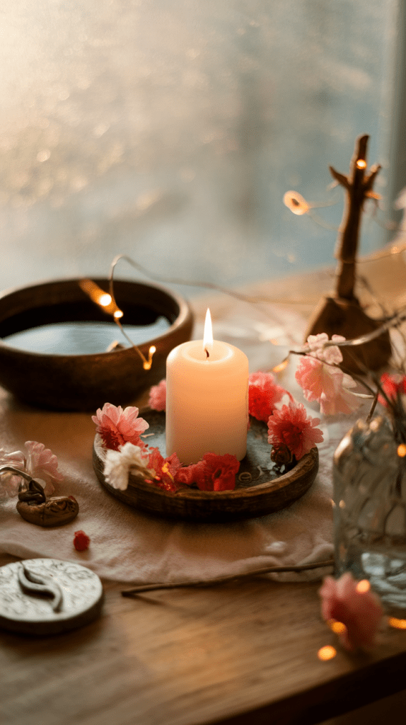 - Altar Refresh – Decorate your altar with white and red candles, snowdrop flowers, and symbols of new beginnings.