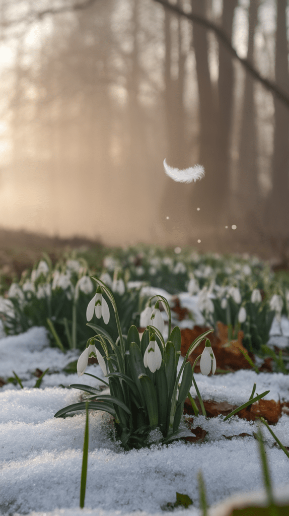 - Snowdrop Flowers – Correspond to February as symbols of hope, renewal, and the first stirrings of spring, embodying the quiet resilience and gentle awakening of the earth after winter’s slumber.