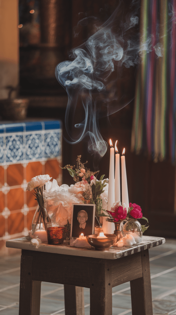 - Ancestral candles and incense.