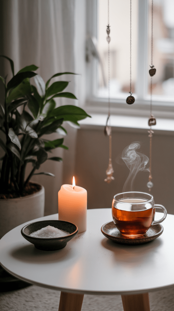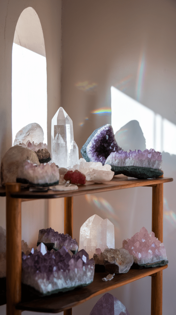 - Crystals like amethyst and black tourmaline.