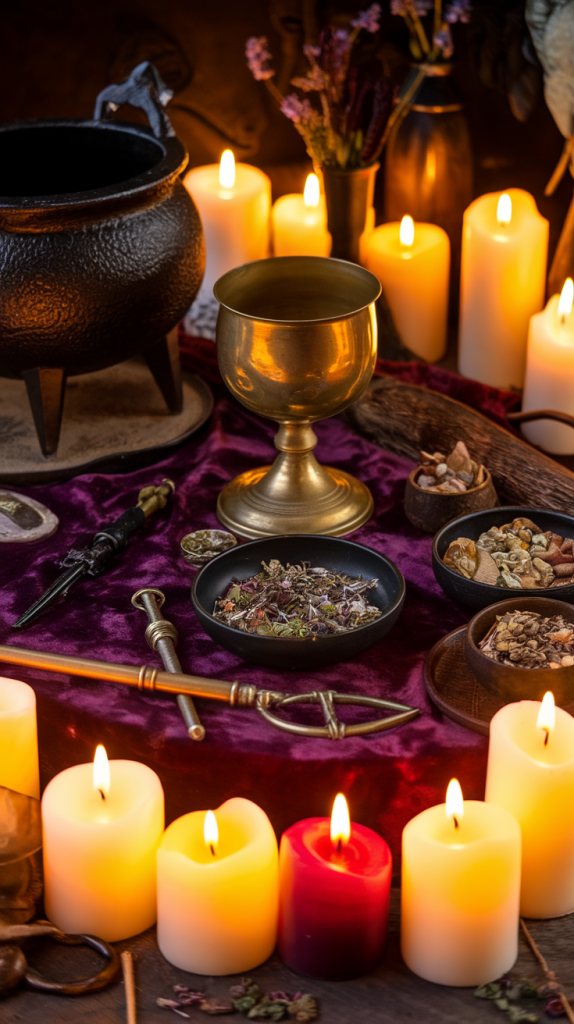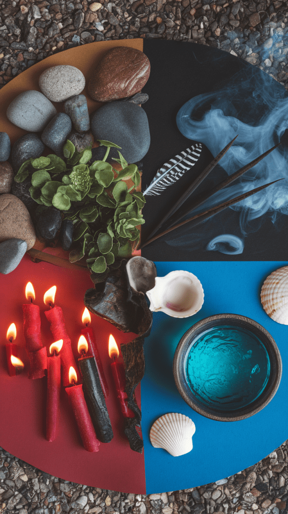 - Candles and incense to represent the elements and spiritual realms.