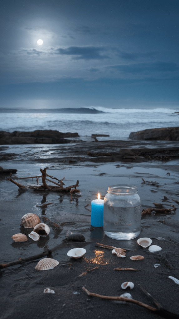 - Collecting shells, driftwood, and sea water for rituals.