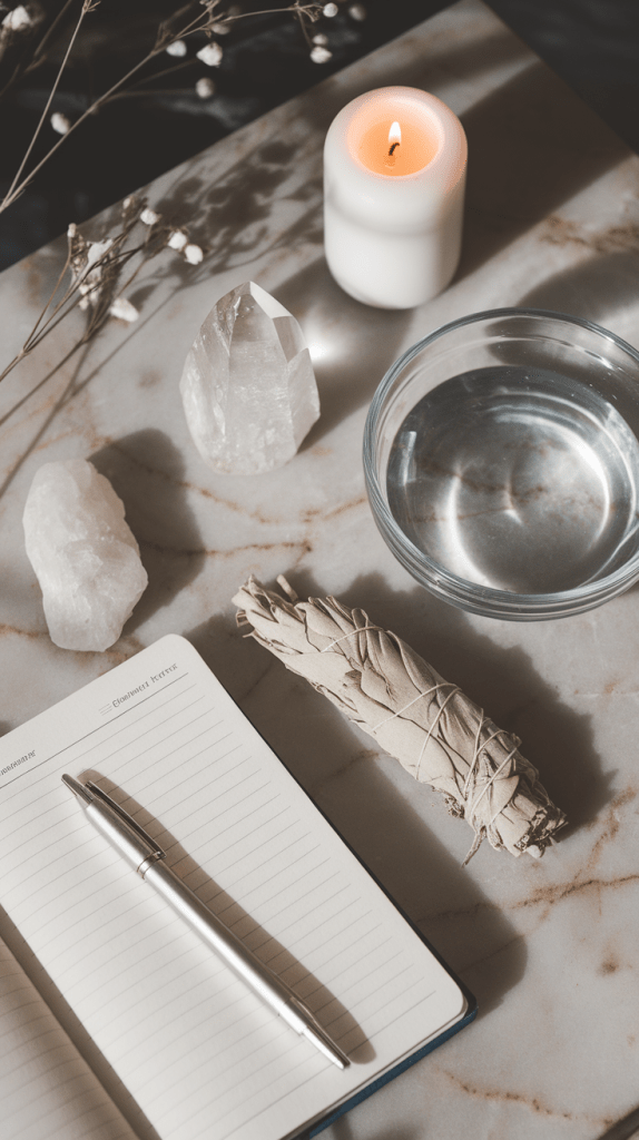 A dedicated journal helps you track the moon’s phases, your rituals, and personal insights.