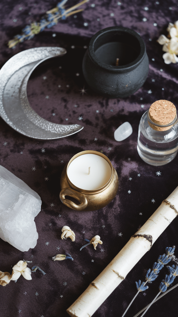 - Offerings: Place crystals, herbs, or water to honor the moon.