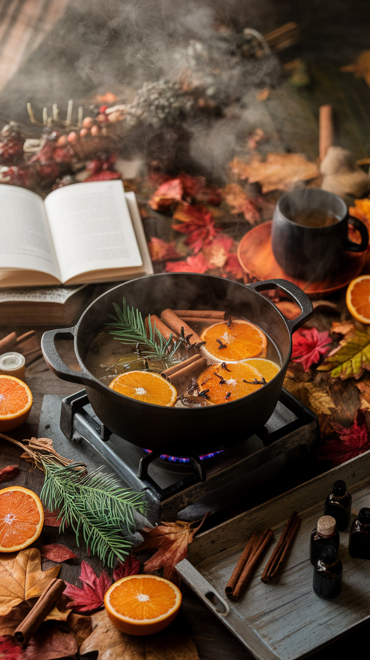 The cedar or pine evokes the grounding energy of the forest, while cinnamon and cloves provide warmth and protection. Orange invites positivity, and vanilla nurtures a sense of comfort. This simmer pot is perfect for feeling connected to the earth during autumn’s changing seasons.e of thankfulness, anchoring you during the harvest season.