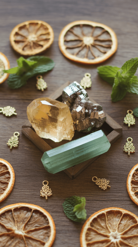 Create a crystal grid using stones like citrine, pyrite, and green aventurine. Arrange them in a pattern that feels intuitively right and focus on drawing abundance into your life.