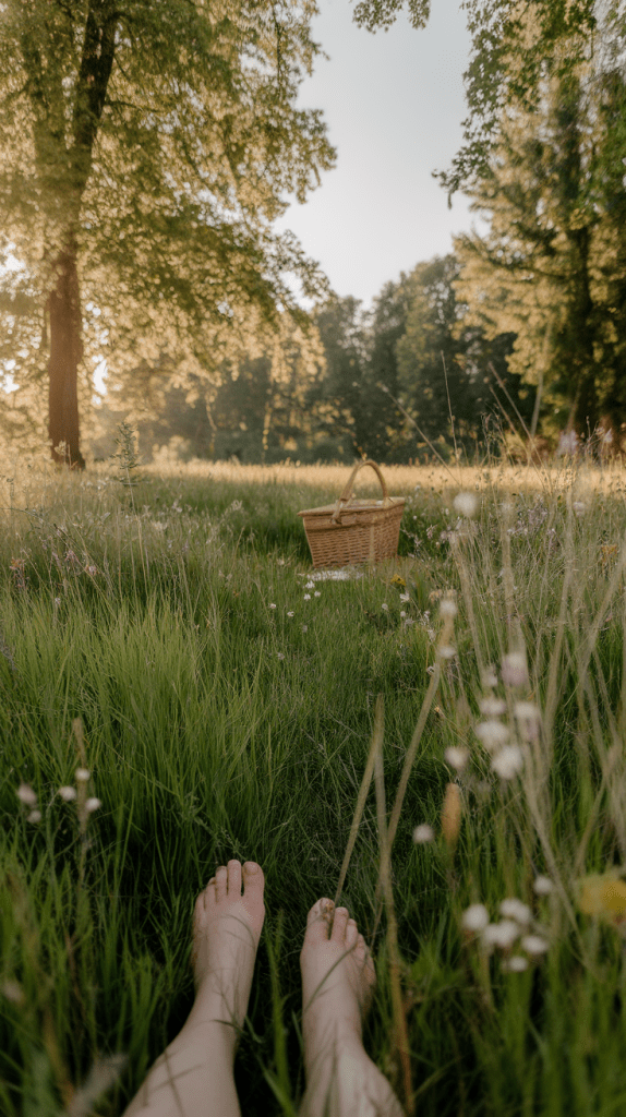- Walk barefoot on grass: Feel the earth beneath your feet and take deep, grounding breaths.