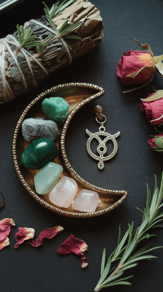 - Add Taurus-related crystals like jade, malachite, or rose quartz.