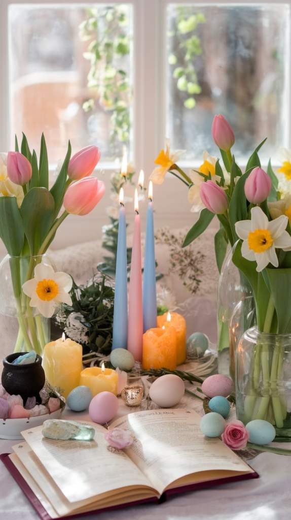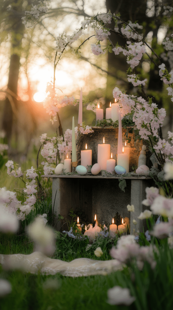 If you set up an altar for Ostara, refresh it with springtime symbols like flowers, eggs, and pastel candles. Use April to transition your altar to reflect the vibrant energy of the season.