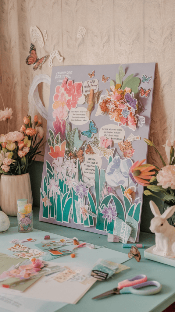 Collect images, quotes, and symbols that represent your goals for the season. Arrange them on a board or journal page.